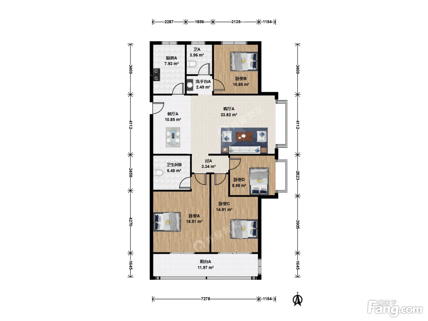 市北南北通大四房喜欢大主卧的看过来