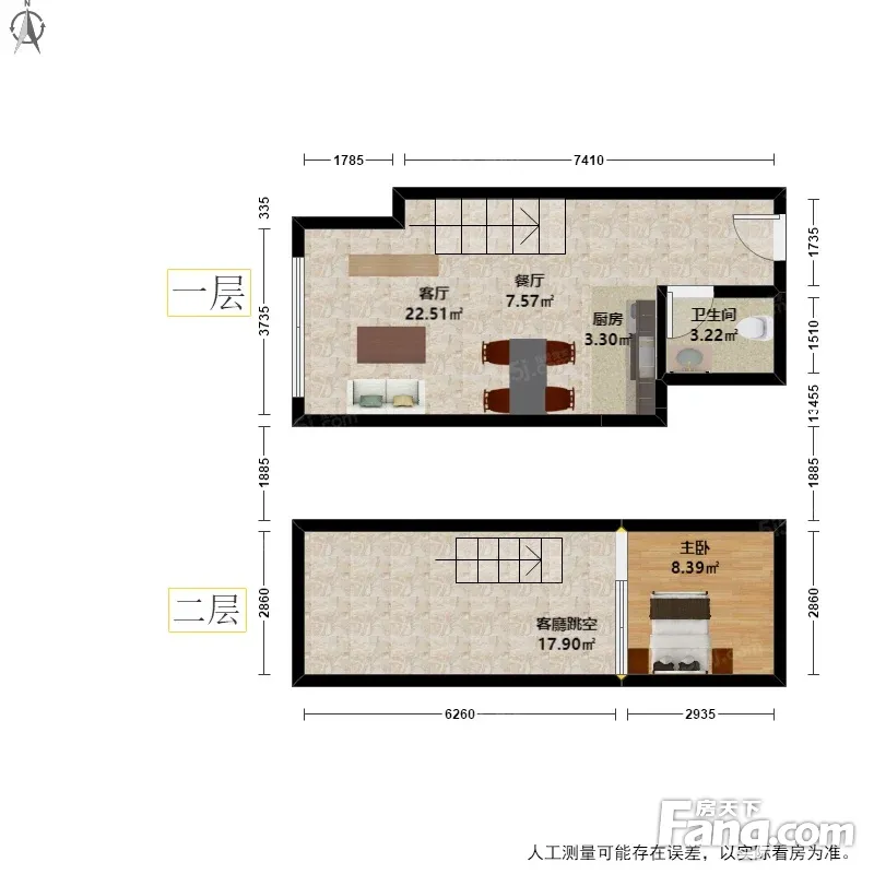 云杉郡 彩虹城板块 东边套LOFT精装2房 3.9米挑空客厅