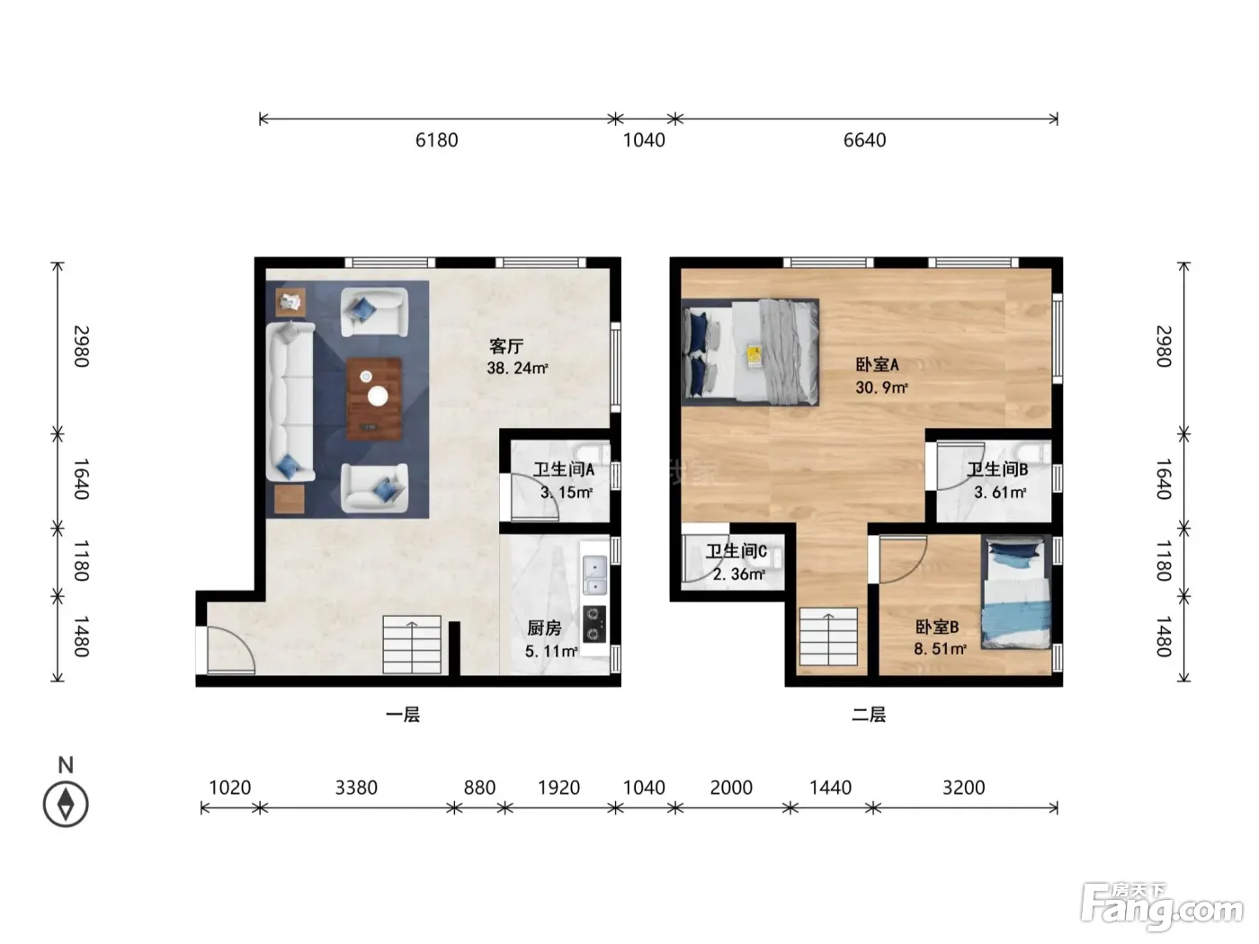 2室1厅3卫