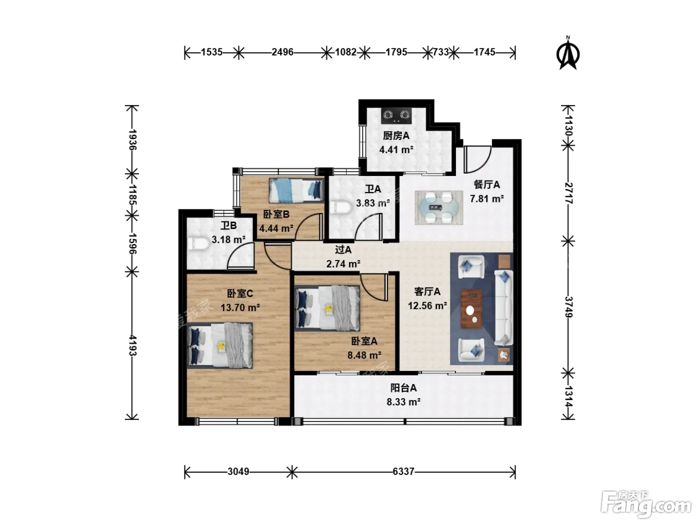 户型齐全,主打南北通透,全明格局,户型方正三居