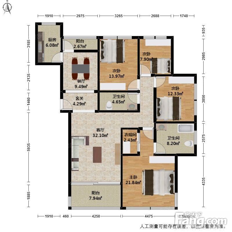 户型齐全,主打户型方正,明厨,主卧朝南四居