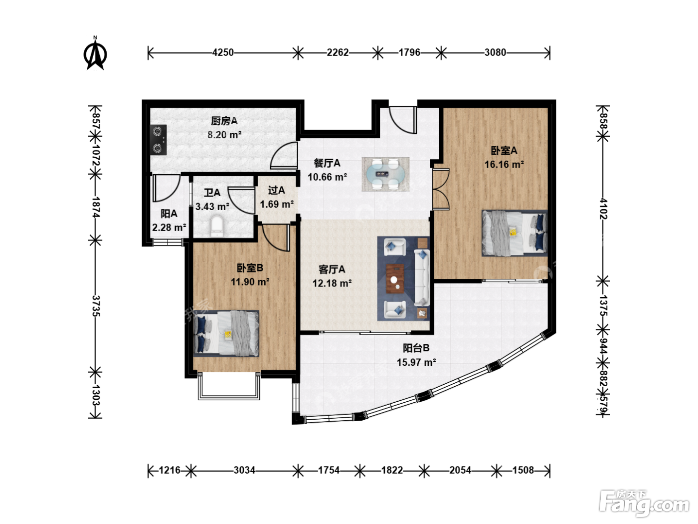 户型齐全,主打户型方正,明厨,明卫,客厅朝南,全明格局,双阳台,主卧朝南二居