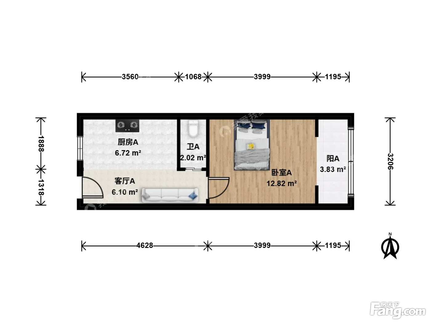户型齐全,主打客厅朝南一居