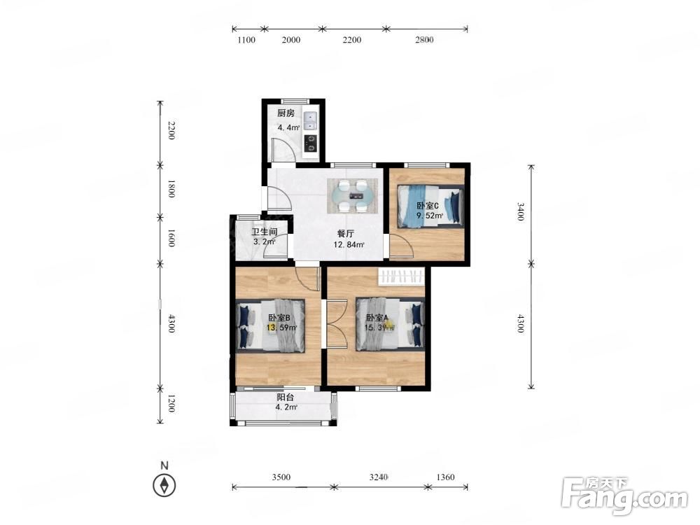 户型齐全,主打户型方正,明卫,明厨,双卧朝南,主卧朝南三居