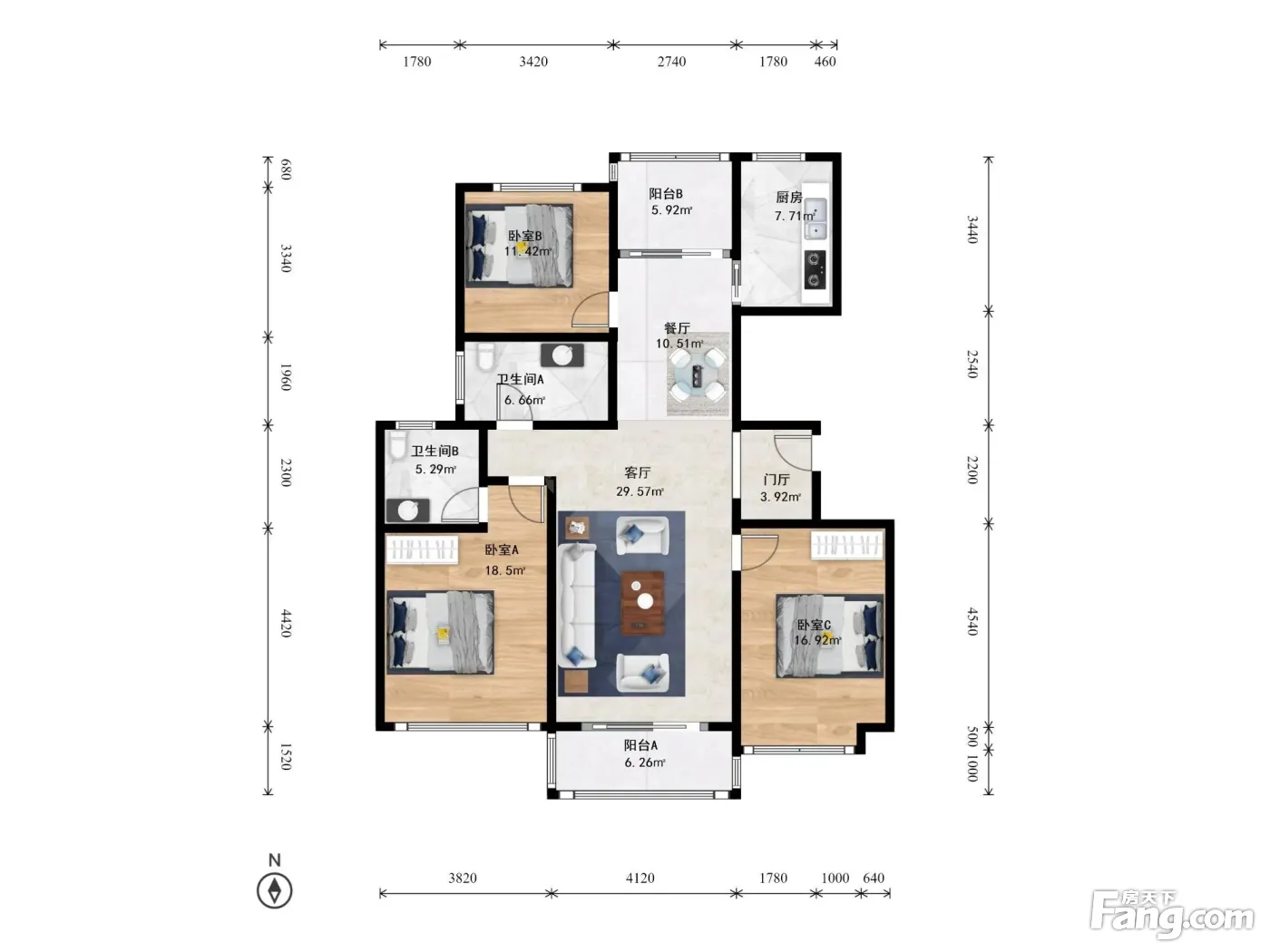 户型齐全,主打户型方正,明卫,明厨,双阳台,双卧朝南,主卧朝南三居