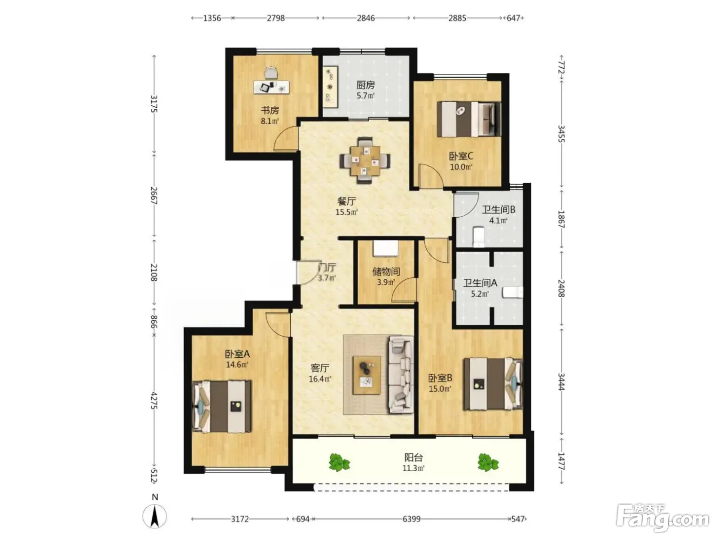 户型齐全,主打户型方正,明卫,明厨,客厅朝南,主卧朝南三居