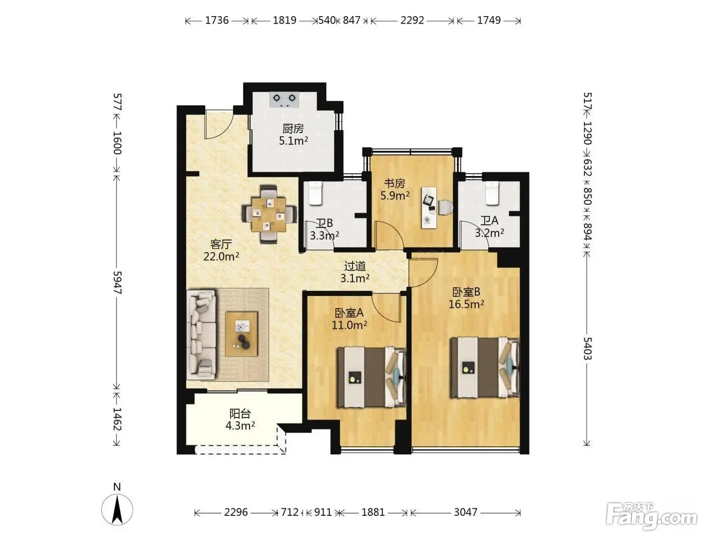 3室1厅2卫
