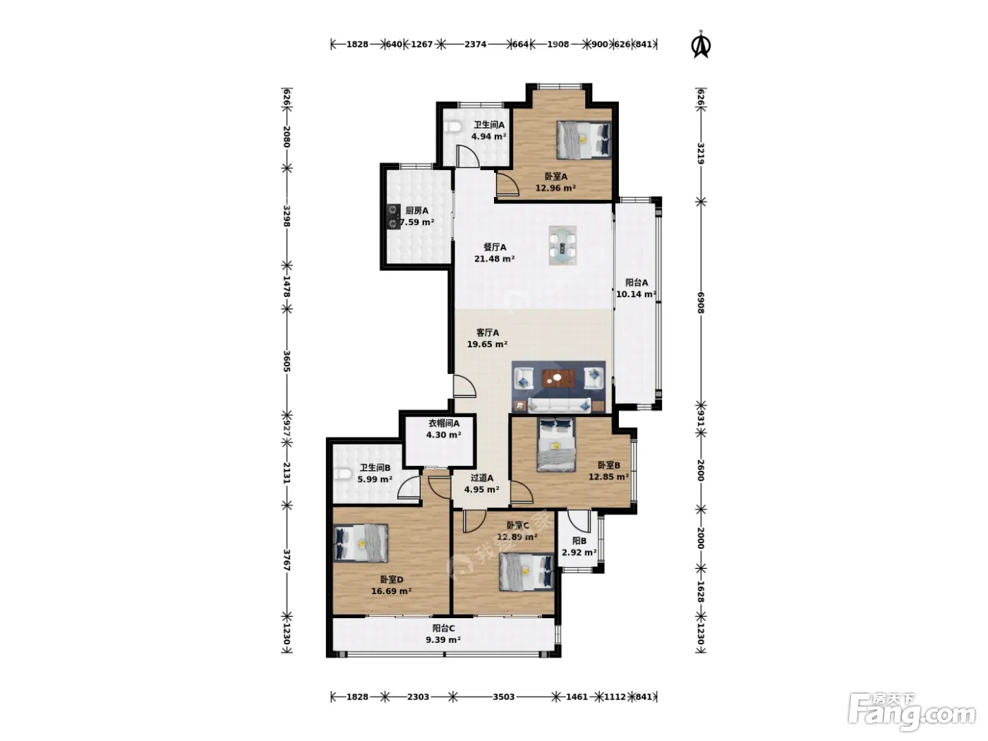 户型齐全,主打户型方正,明卫,明厨四居