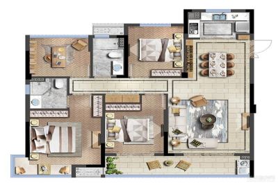 户型齐全,主打户型方正,采光充足四居