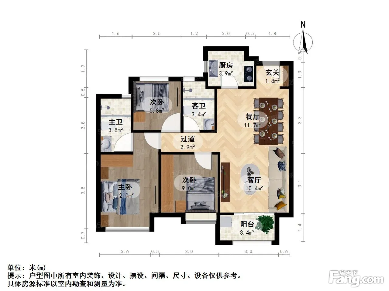 户型齐全,主打户型方正,独立衣帽间,明卫,明厨,客厅朝南,主卧朝南三居