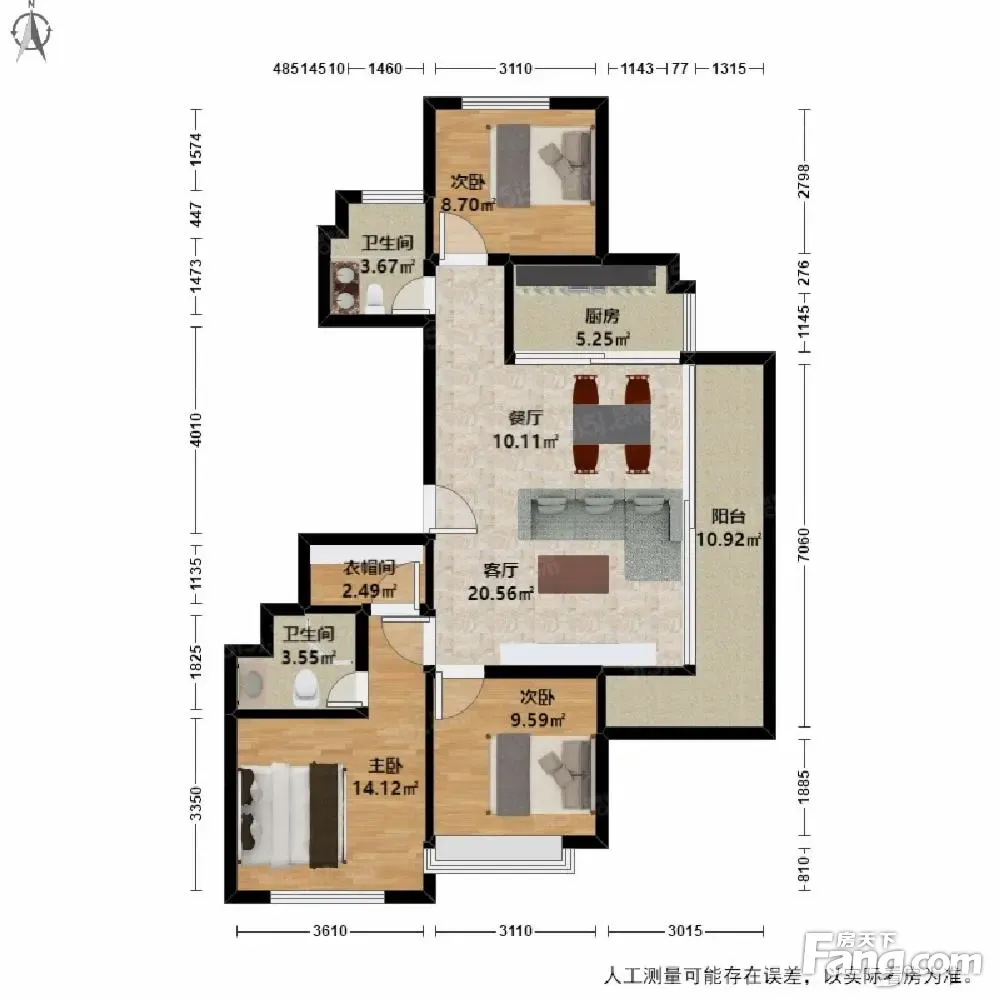 融创华奥时代奥城 3室2厅 南