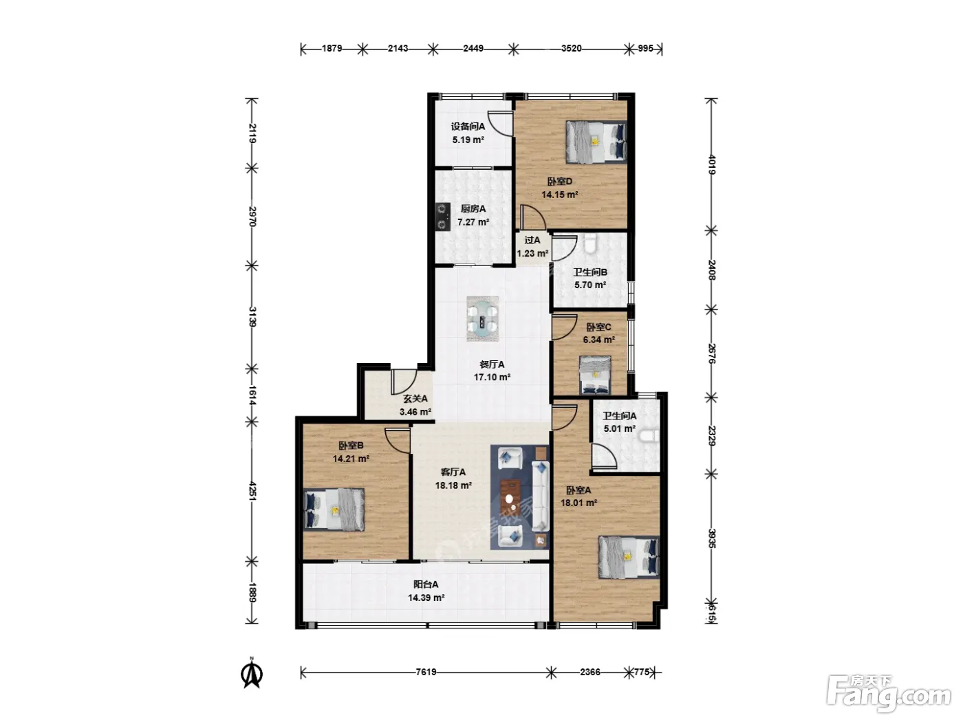 户型介绍:此房户型为4室2厅2卫,建筑面积为143.59平米,朝向为南。