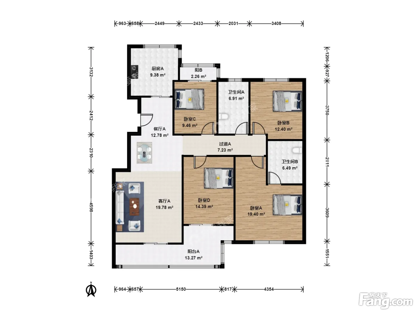 户型介绍:此房户型为4室2厅2卫,建筑面积为138.47平米,朝向为南北。