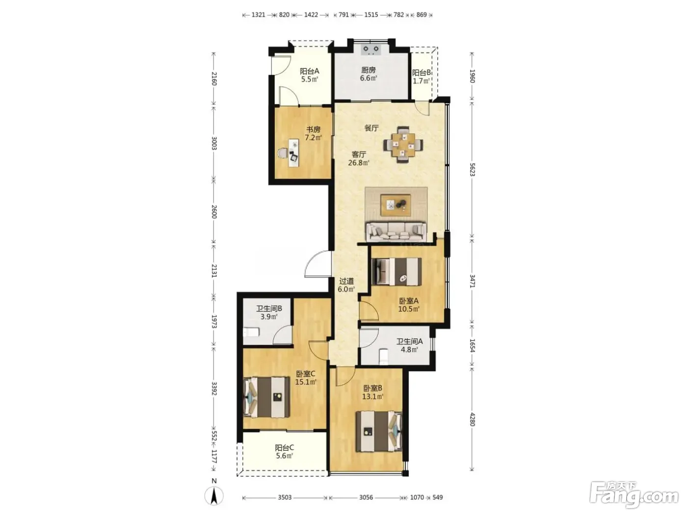户型齐全,主打三开间朝南,餐客分离,大面宽阳台四居