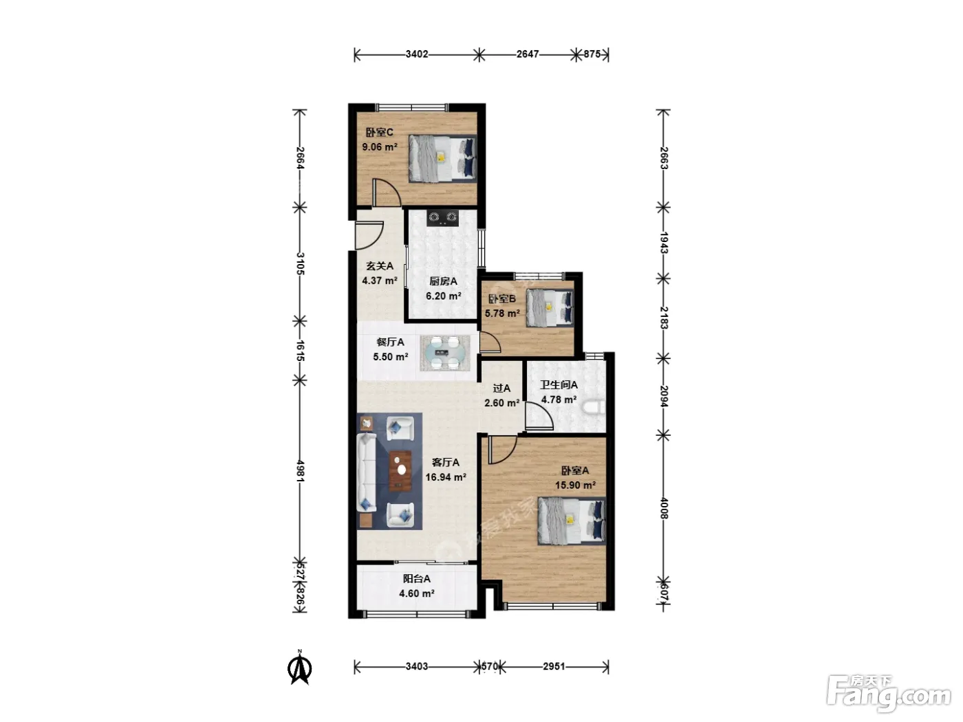 户型齐全,主打全明格局,户型方正,卧室朝南三居