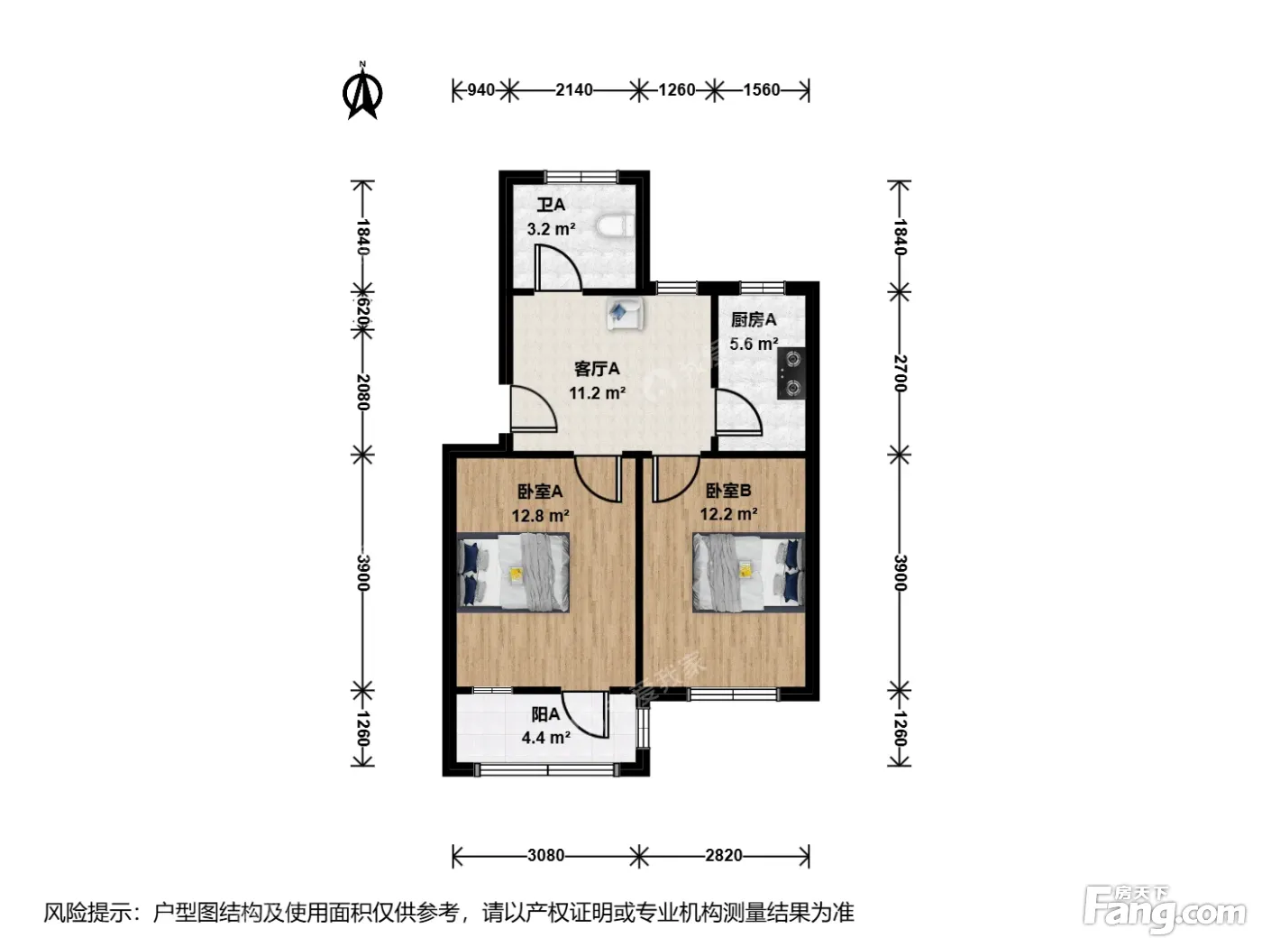 户型介绍:此房户型为2室1厅1卫,建筑面积为57.76平米,朝向为南。