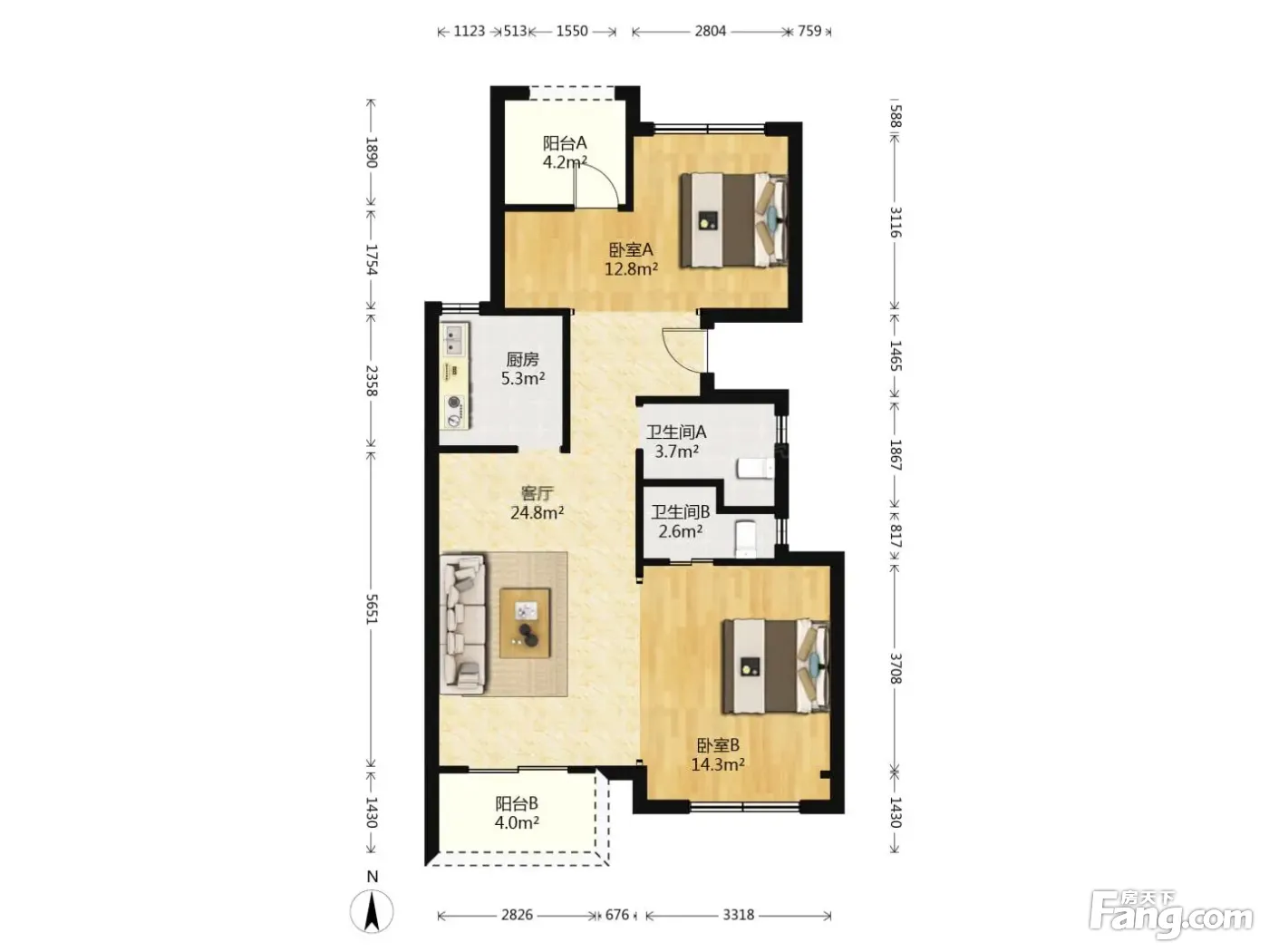 户型齐全,主打南北通透,全明格局三居