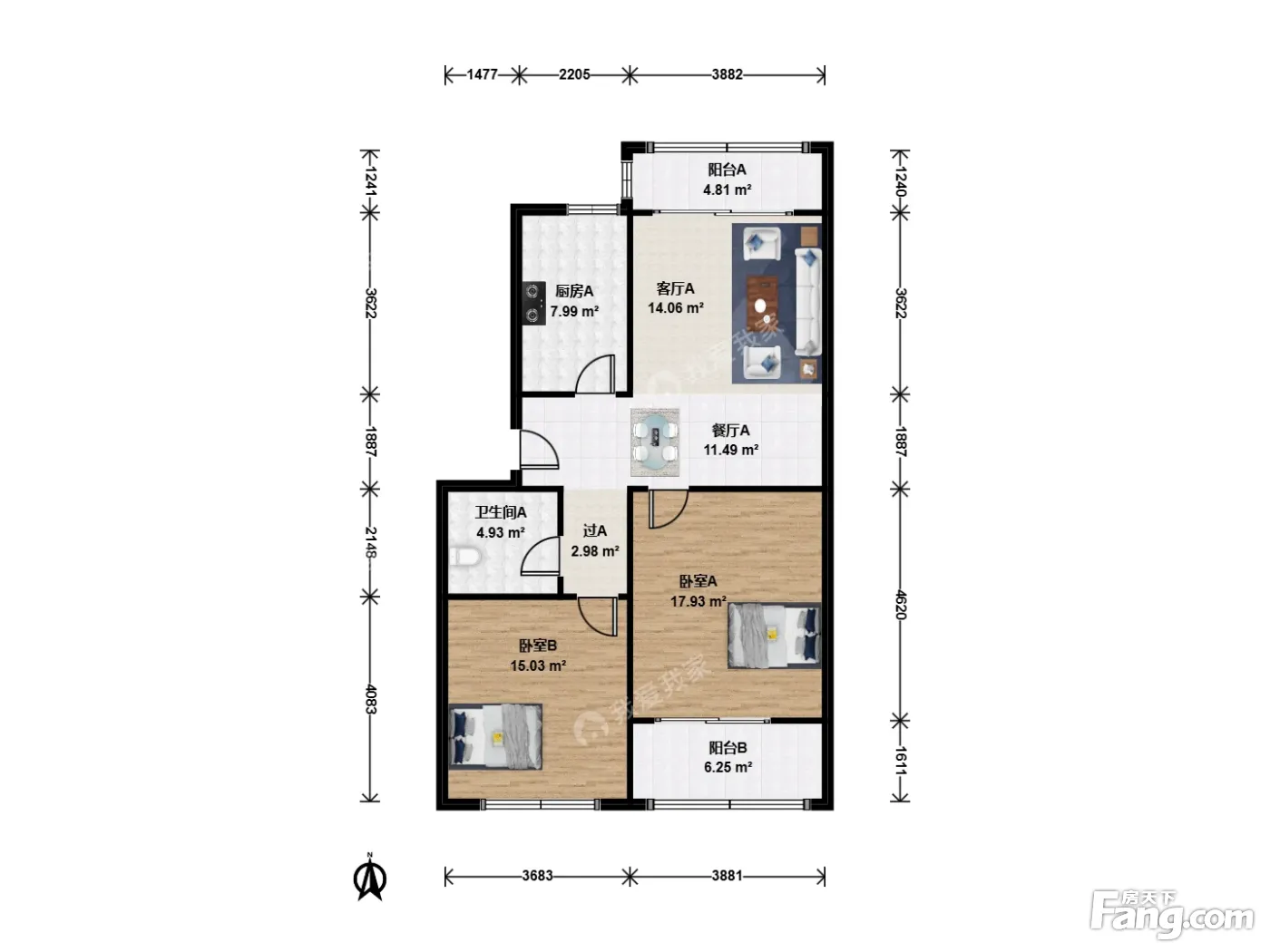 户型齐全,主打户型方正,明卫,明厨,双阳台,主卧朝南二居