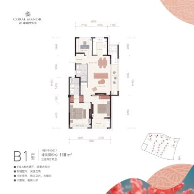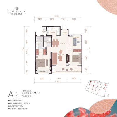 仁恒祥生珊瑚世纪雅园户型主要有105平-110平的全明格局,户型方正的三居 、125平-145平的全明格局,户型方正的四居 。