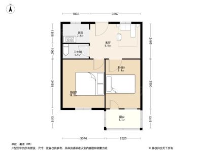 户型齐全,主打明厨,明卫,客厅朝南,全明格局一居