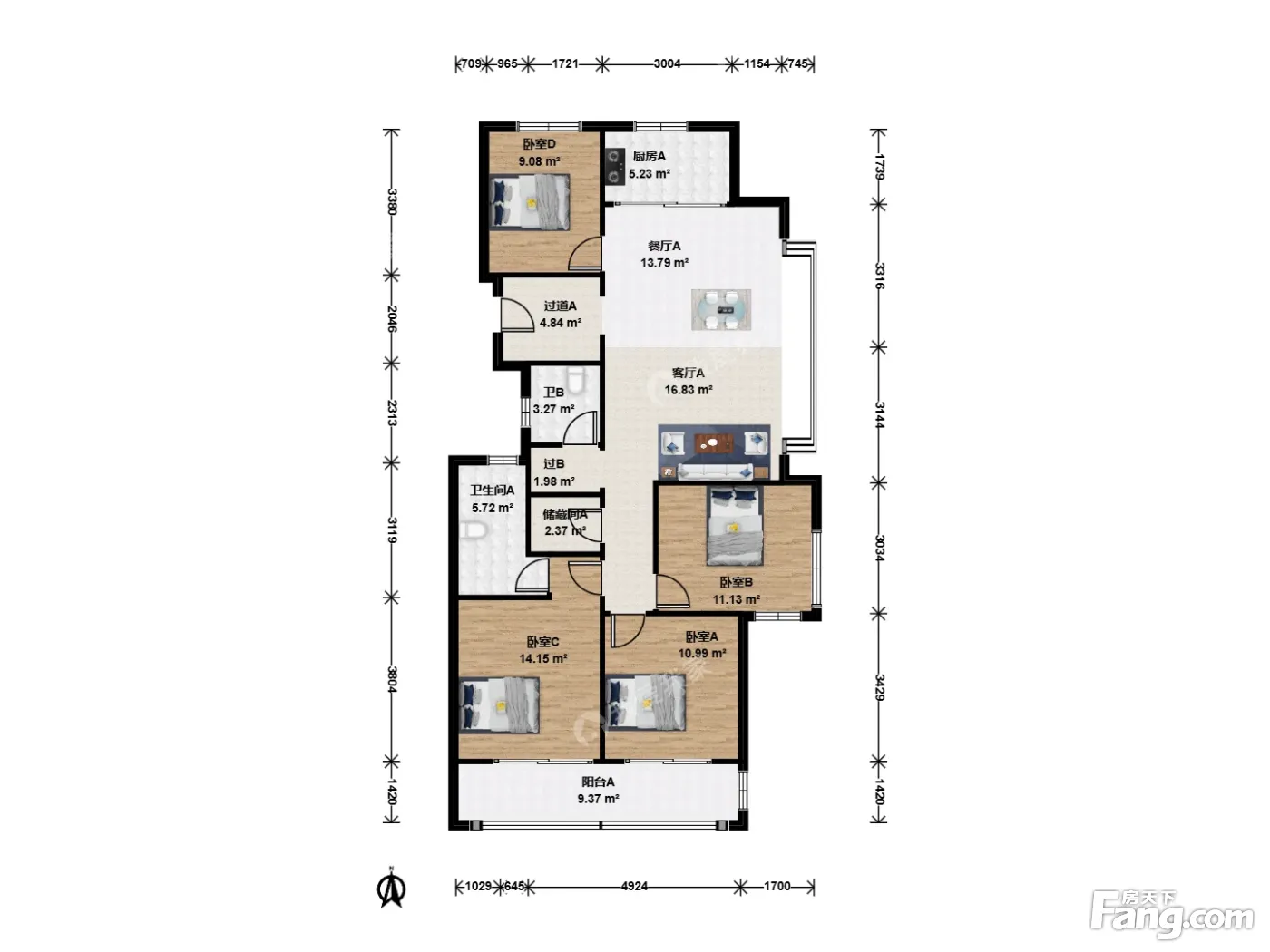 户型齐全,主打南北通透,全明格局,户型方正四居