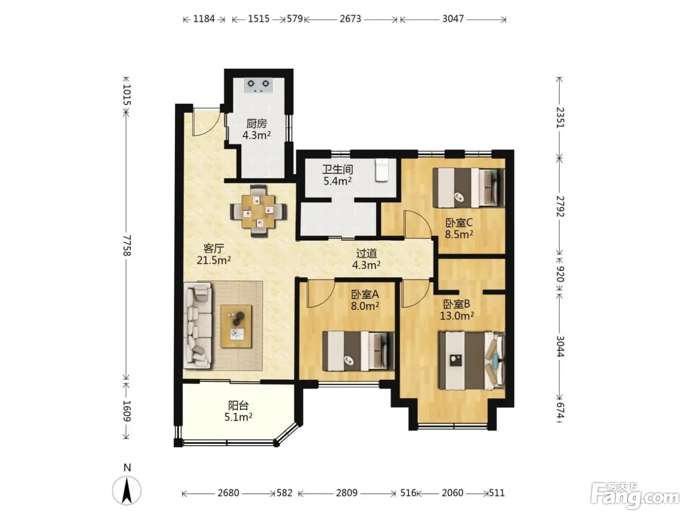 3室2厅1卫