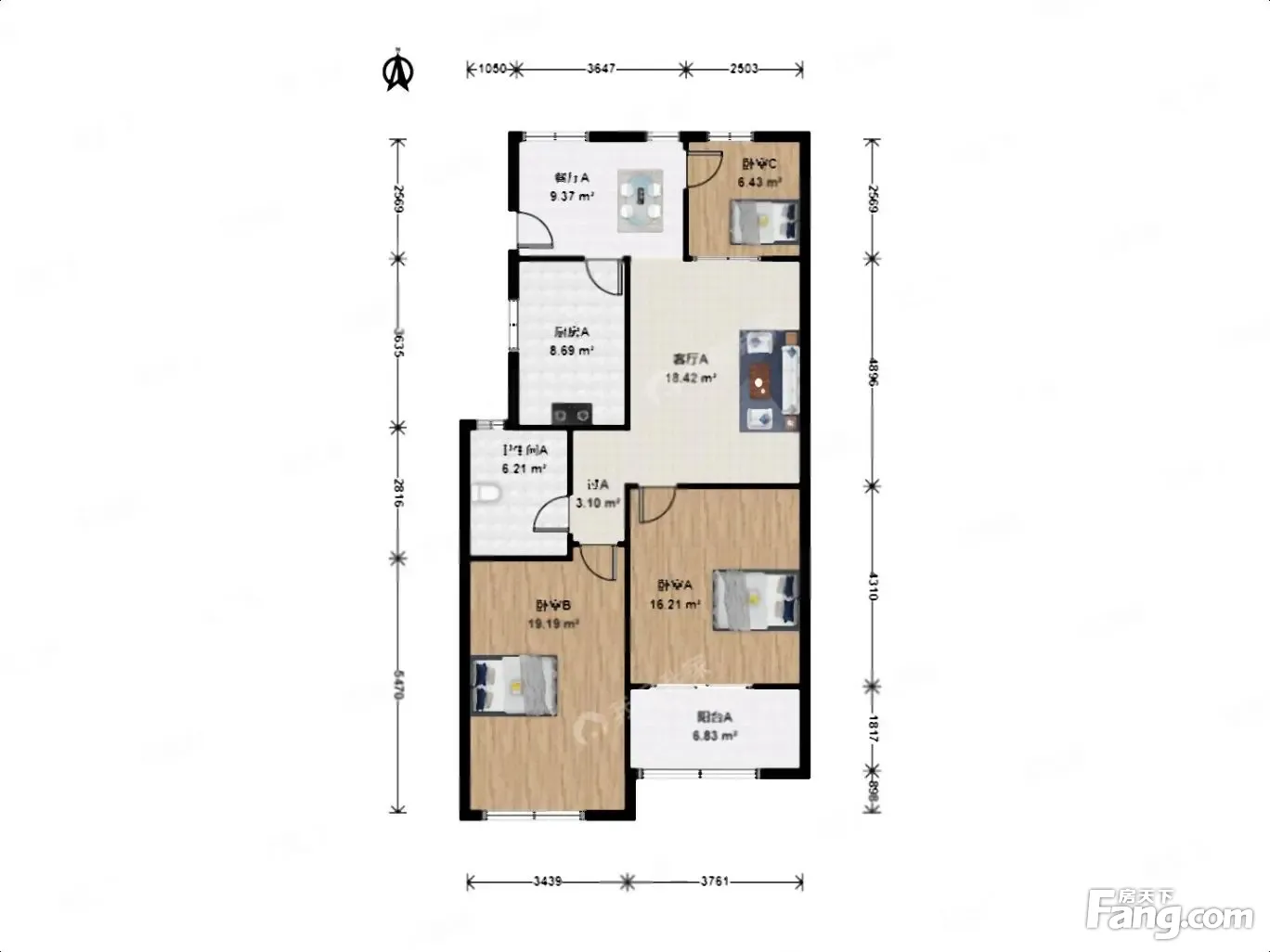 户型齐全,主打户型方正,明厨,客厅朝南,独立衣帽间,双卧朝南,主卧朝南三居
