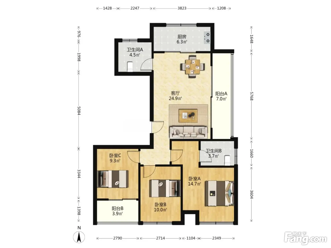 吟彩芳菲之城 3室1厅 南