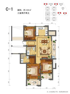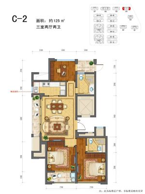 户型齐全,主打南北通透,卧室朝南三居