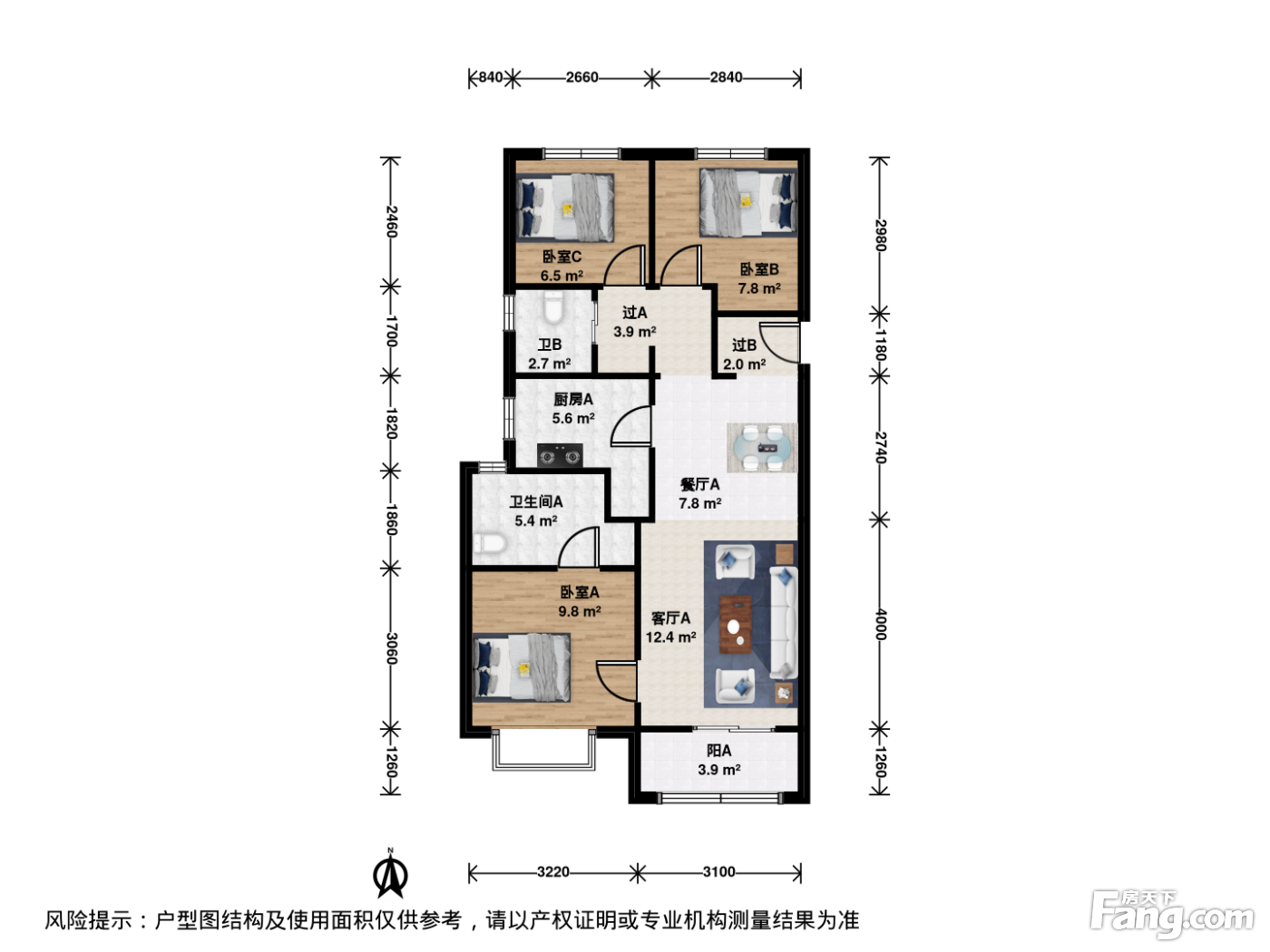 户型齐全,主打户型方正,独立衣帽间,明卫,明厨,客厅朝南,主卧朝南三居