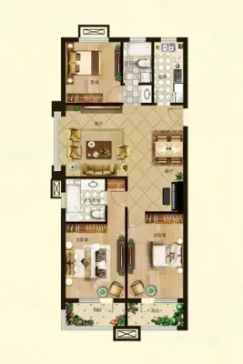 户型齐全,主打采光充足,客厅朝南,卧室朝南三居