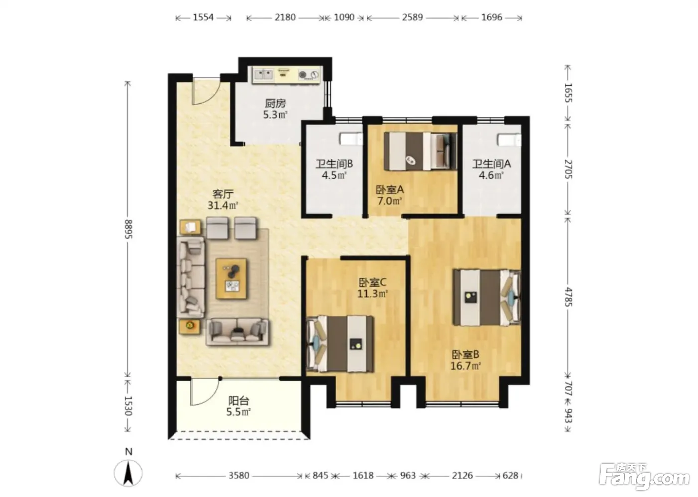 3室2厅1卫