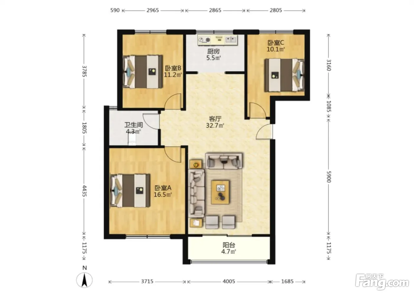 户型齐全,主打动静分离,采光充足三居