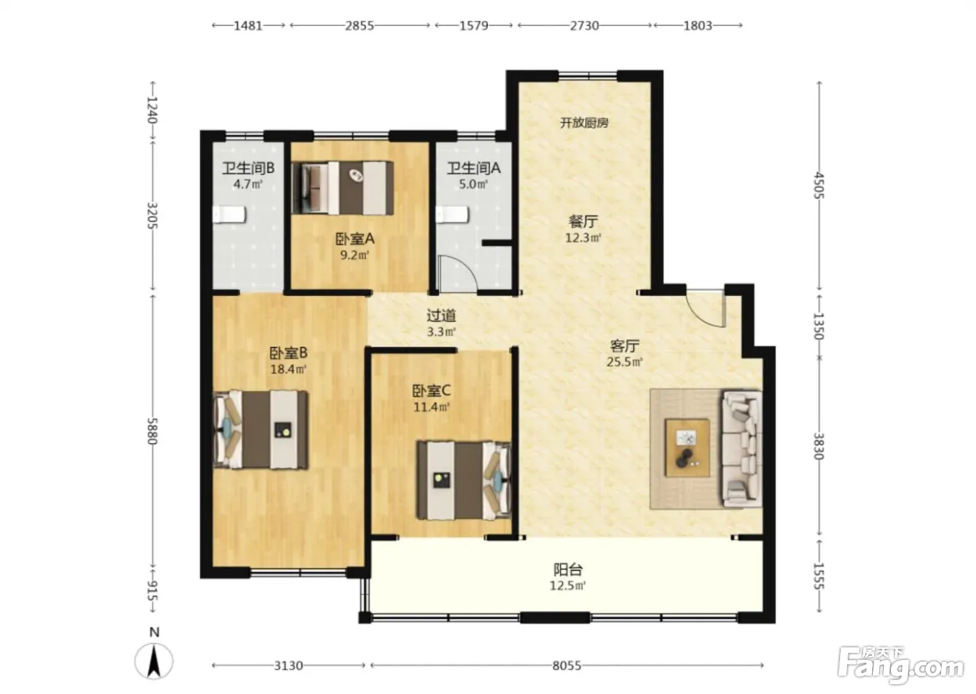 3室2厅1卫