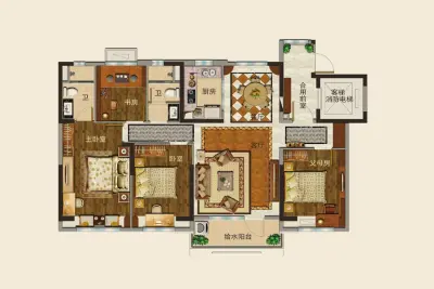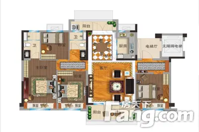 户型齐全,主打动静分离,客厅朝南,主卧朝南四居