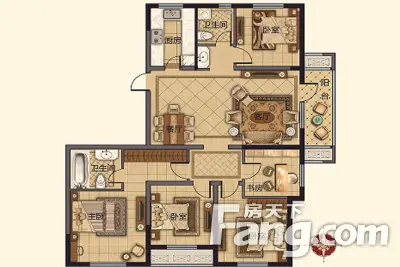 户型齐全,主打南北通透,全明格局,采光充足,卧室朝南,主卧带卫,观景落地窗,L型厨房,厨卫不对门三居
