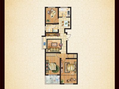 户型齐全,主打户型方正,采光充足,卧室带阳台三居