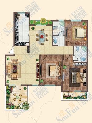 凤凰太阳城 3室1厅 南 北