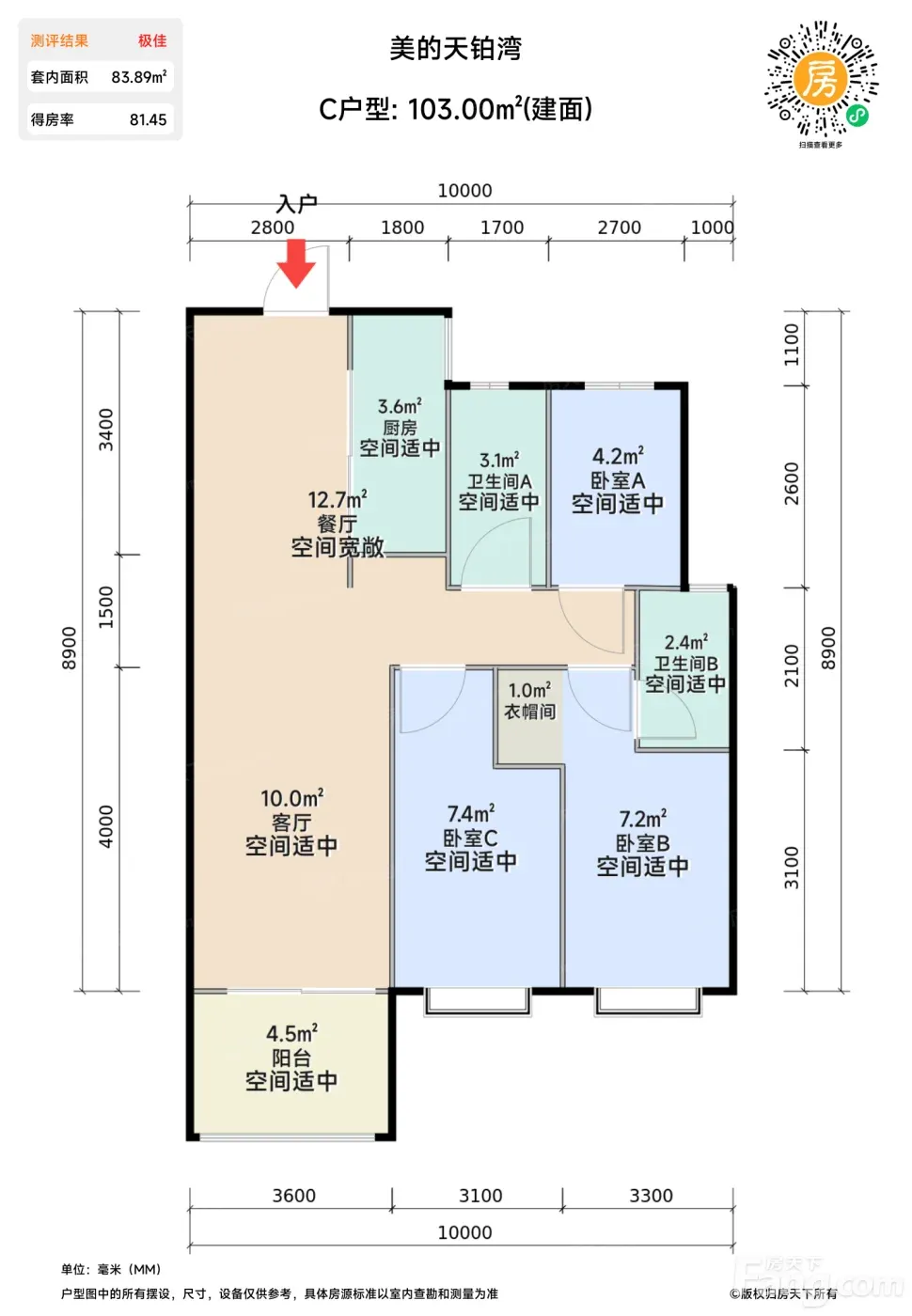 *获取完整户型报告,同时会有免费语音讲解服务