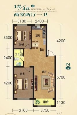 峰雲印象 2室2厅 南 北