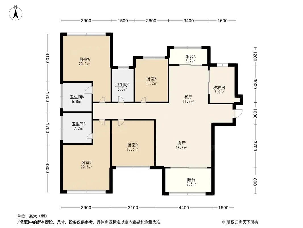 户型齐全,主打主卧带卫,双阳台四居