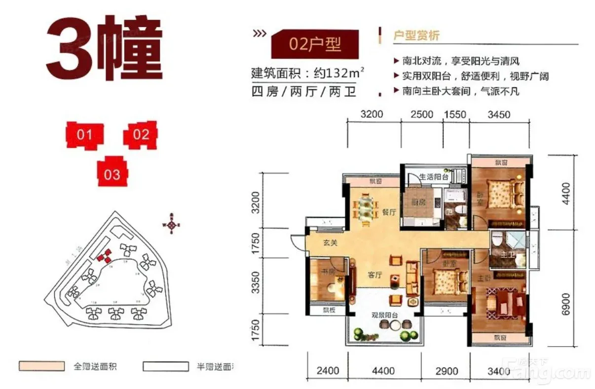 户型齐全,主打主卧带卫,双阳台四居