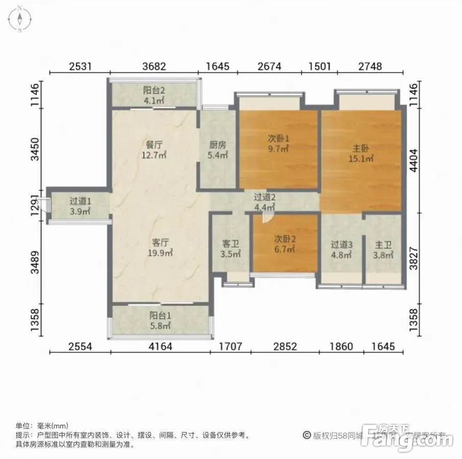 户型齐全,主打明卫,独立衣帽间,双阳台三居