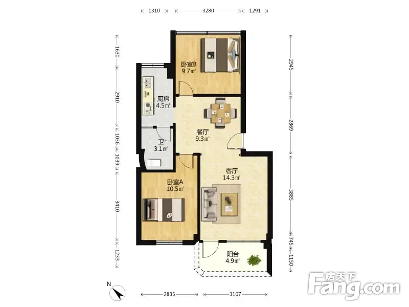 育德安居 2室1厅 69.59平