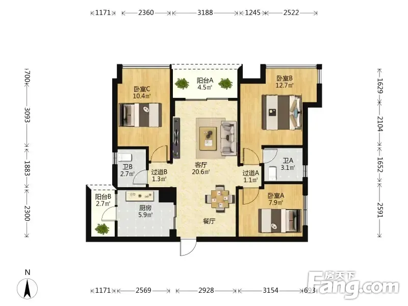 3室2厅1卫