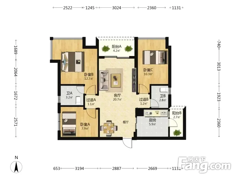 户型齐全,主打户型方正,动静分离三居