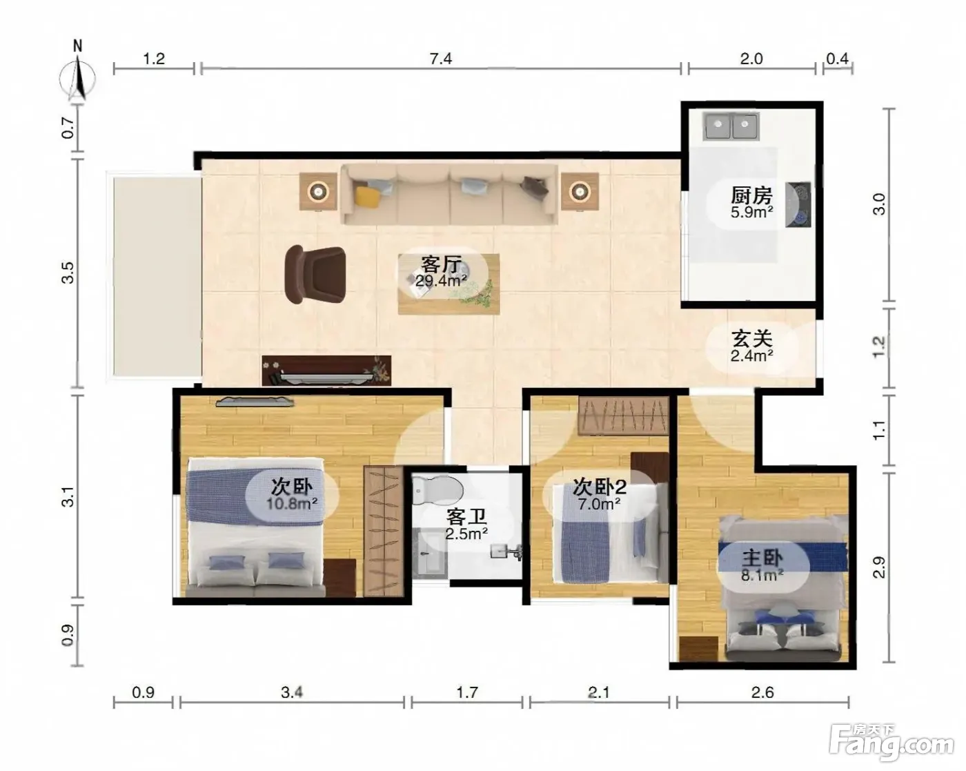 户型齐全,主打南北通透,全明格局三居