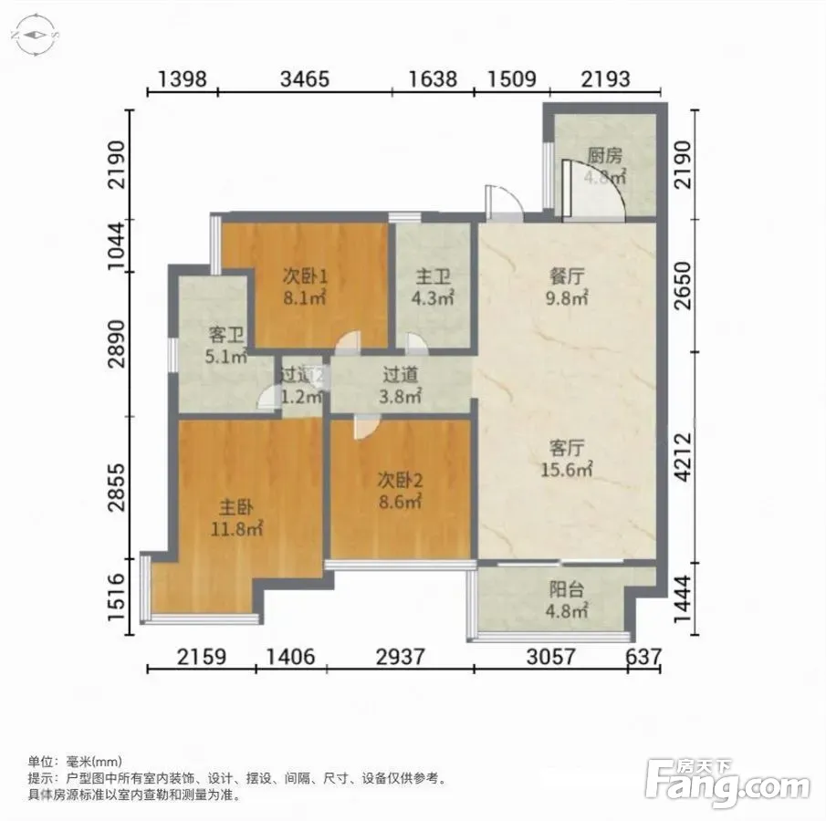 户型齐全,主打明卫,独立衣帽间,双阳台三居