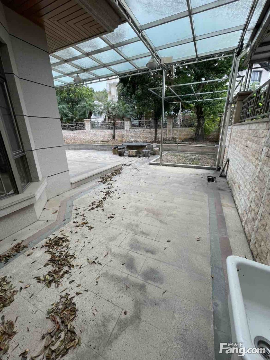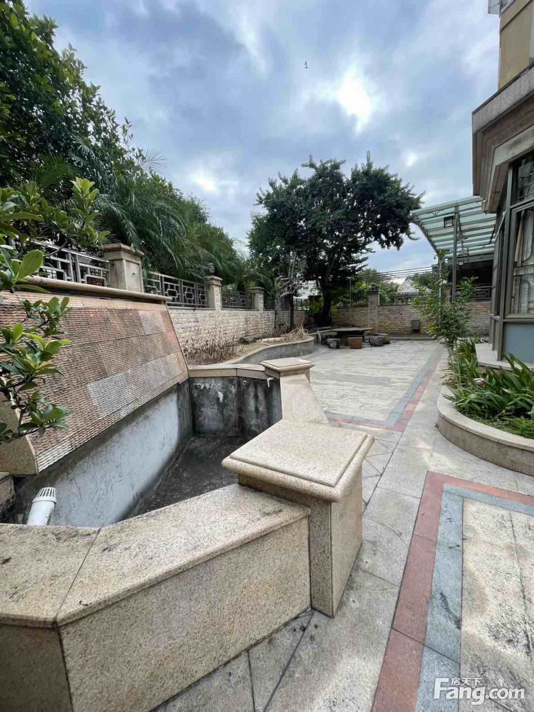 拼车库独栋别墅,挂石外墙,花园做硬化及鱼池,花园大