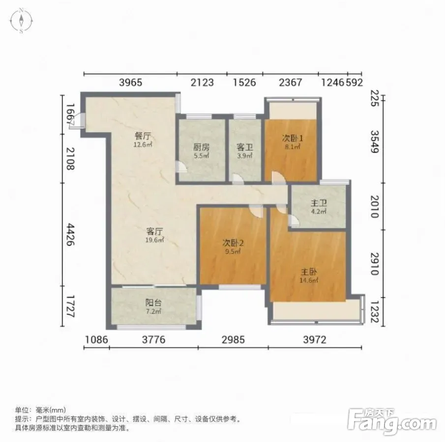 户型齐全,主打明卫,双阳台,主卧朝南三居